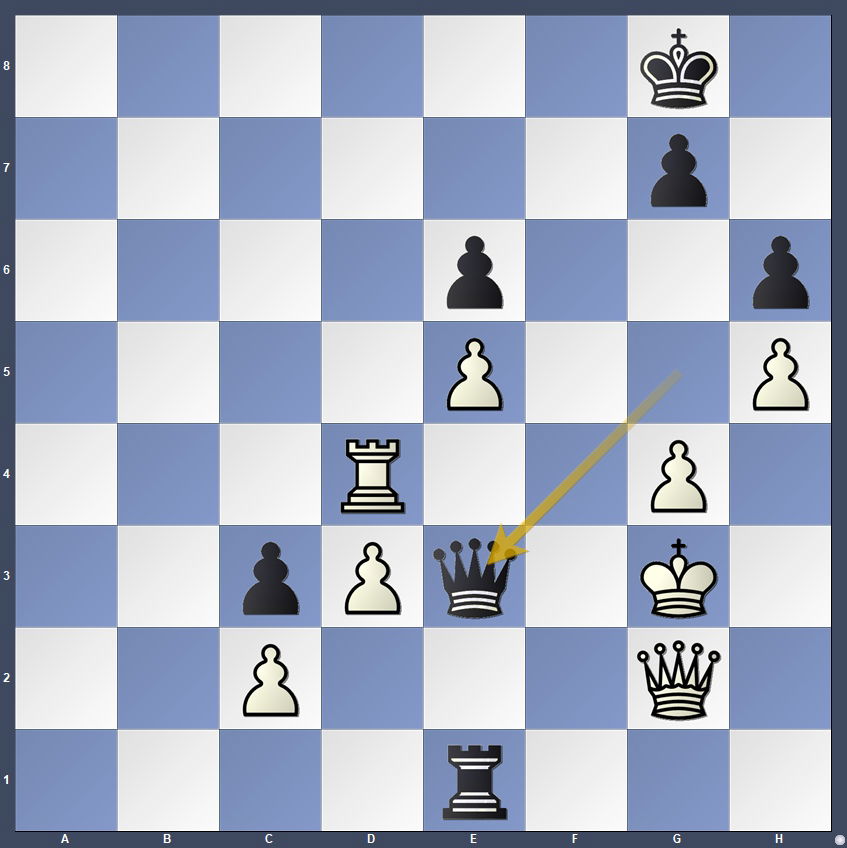 El gran maestro chino Wei Yi decidió abandonar en la posición final porque 61.Df3 no funciona debido a 61…Dxd4 o incluso 61…Tg1+. Y, prácticamente, ante cualquier jugada, el rey blanco permitiría a Sindarov capturar la torre y asegurar la victoria.